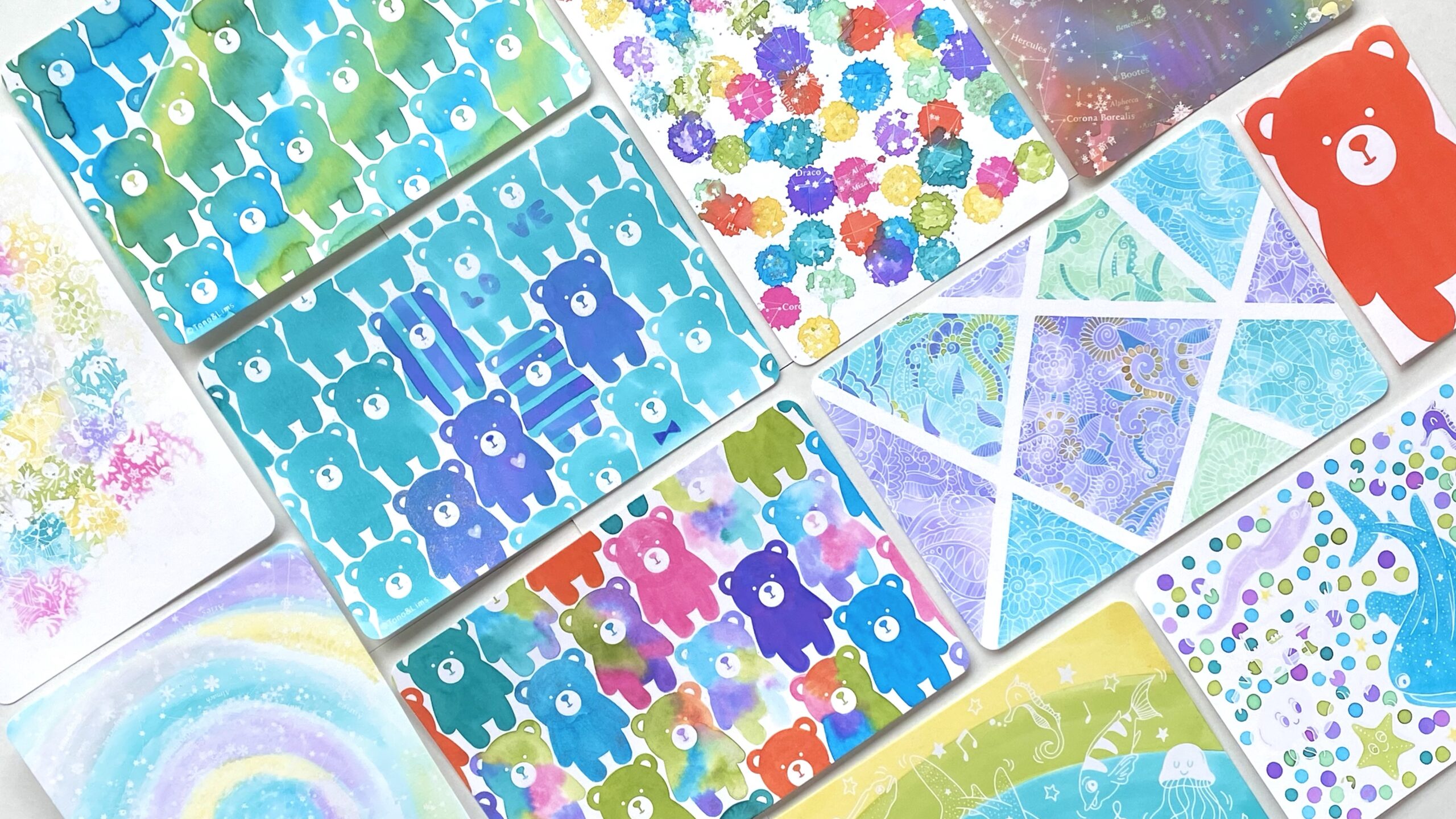 私が用意している絵柄は4種類、インクは10〜12色です。